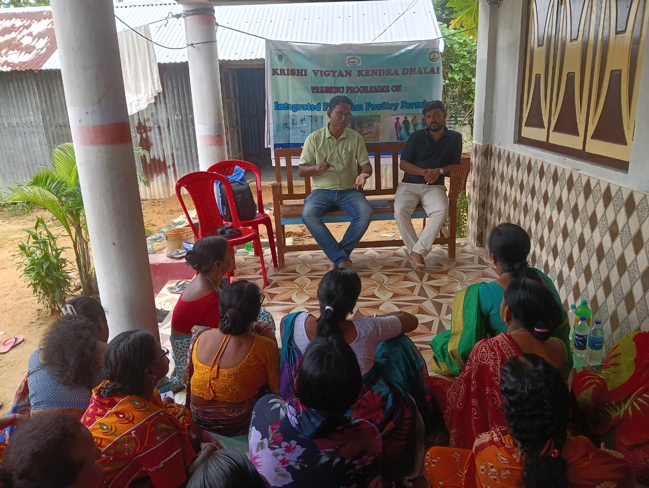 A one-day duration training programme on “Integrated Fish-cum-Poultry Farming” was successfully conducted at Harinmara, Kulai on 05th November 2025, by SMS (Fisheries Science), KVK Dhalai.
